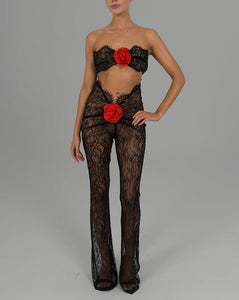 Sophie Flared Trousers in Black with Bespoke Lining