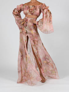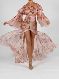Ava Maxi Skirt Set In Rose Silk Ready To Ship