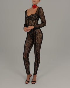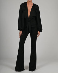 Beaudelle Flares and Bodysuit in Black Satin Ready To Ship