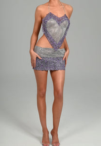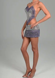 Remi Top and Mini Skirt in Purple Cheetah Ready To Ship