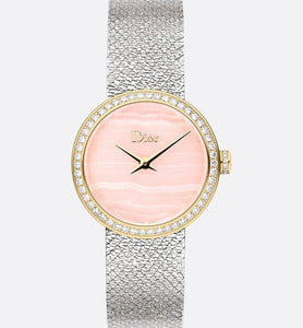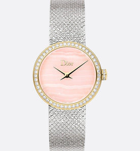 La D de Dior Satine • Ø 25 mm, Steel, Yellow Gold, Aragonite and Diamonds