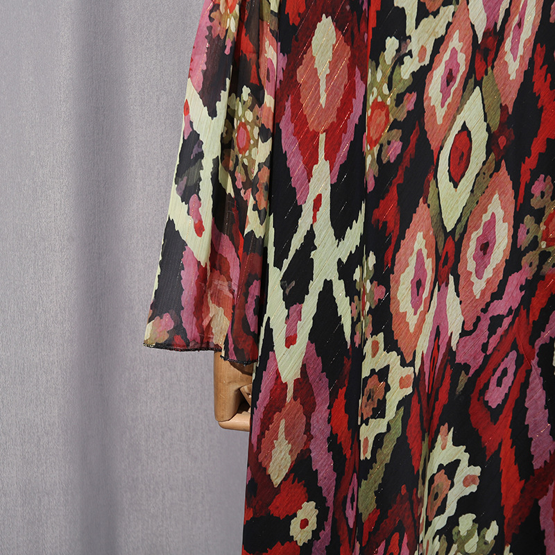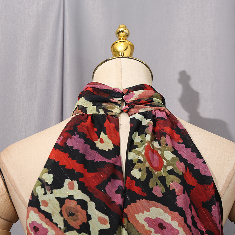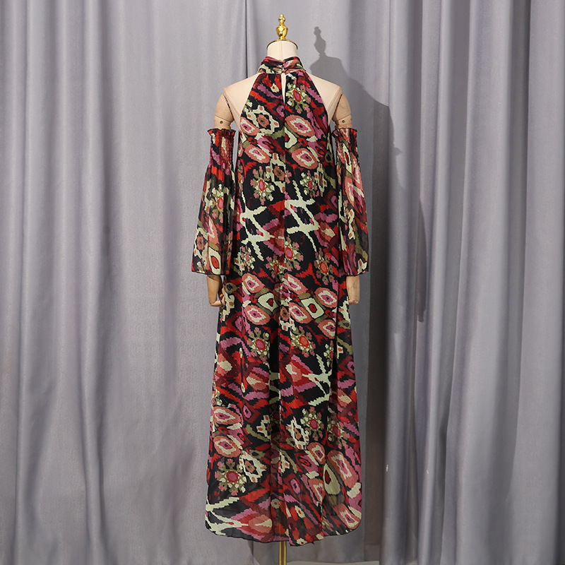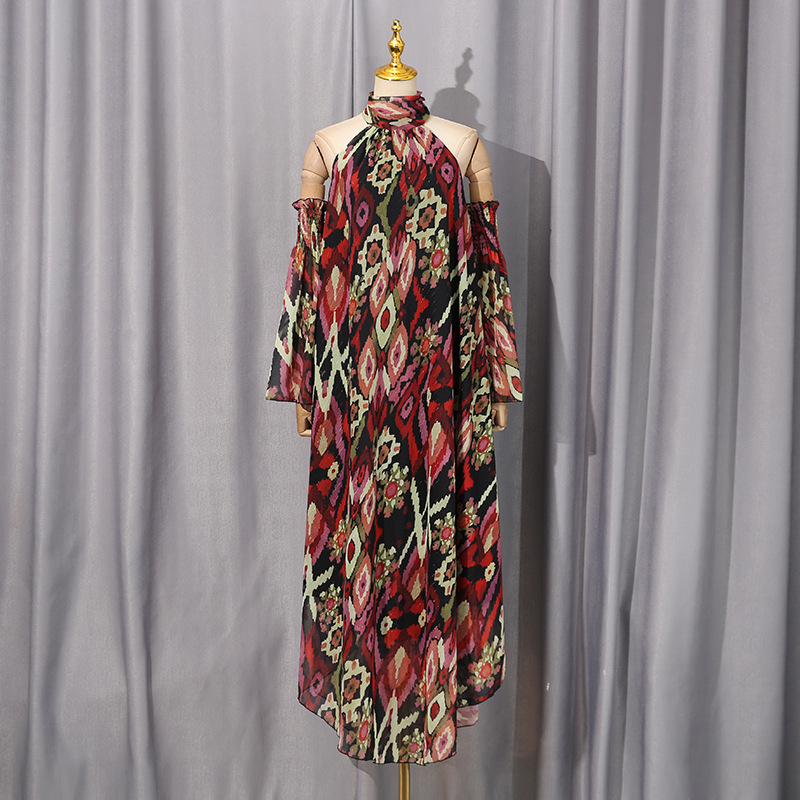 Autumn Winter French Elegant Vacation Large Dress Printed Halterneck Long Sleeved Dress Women Clothing