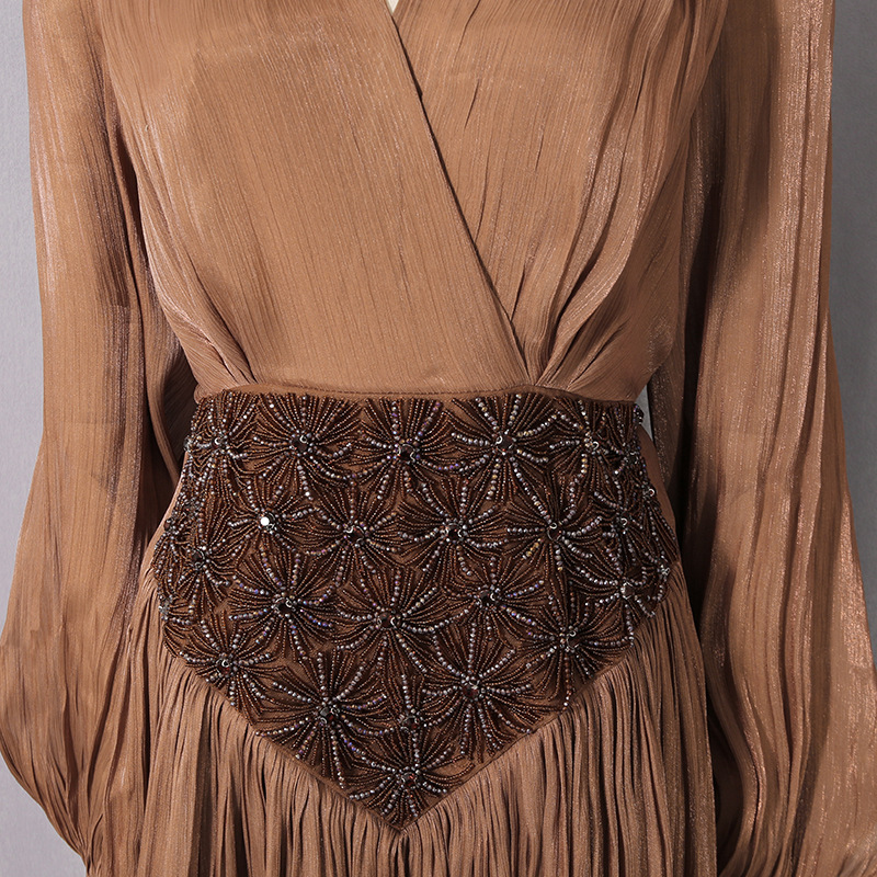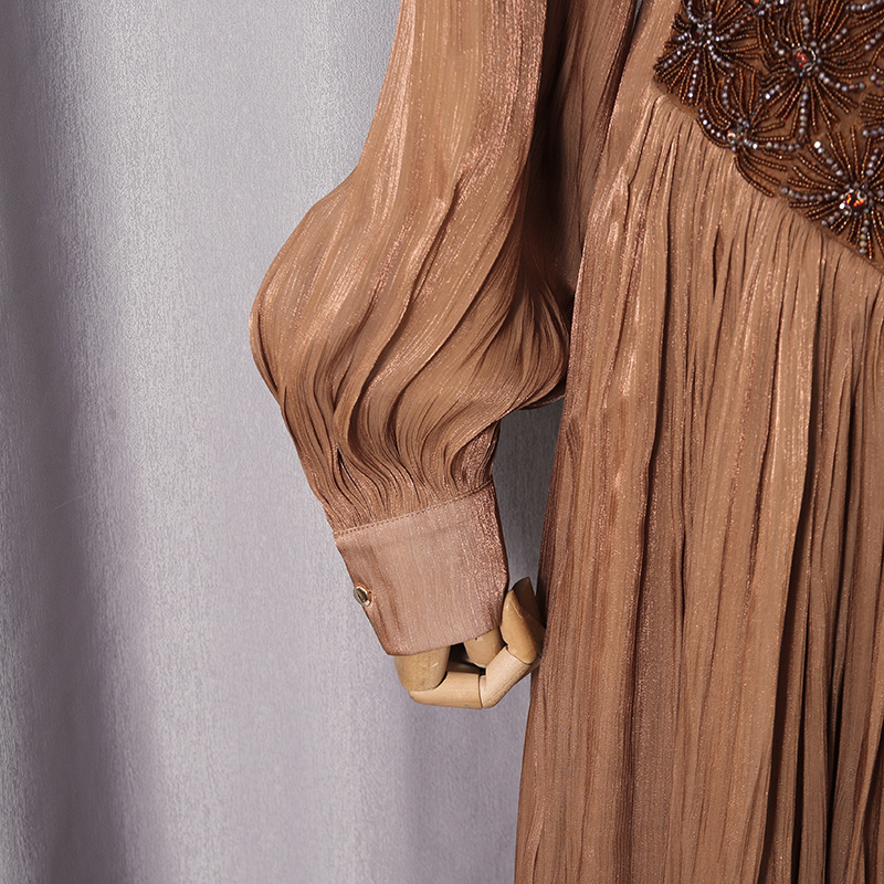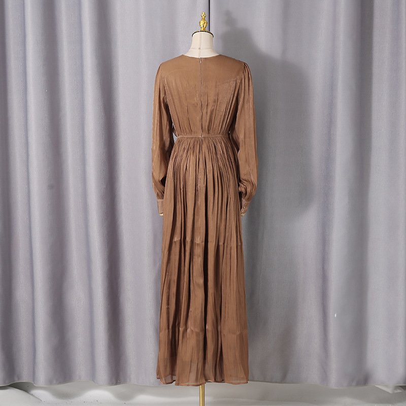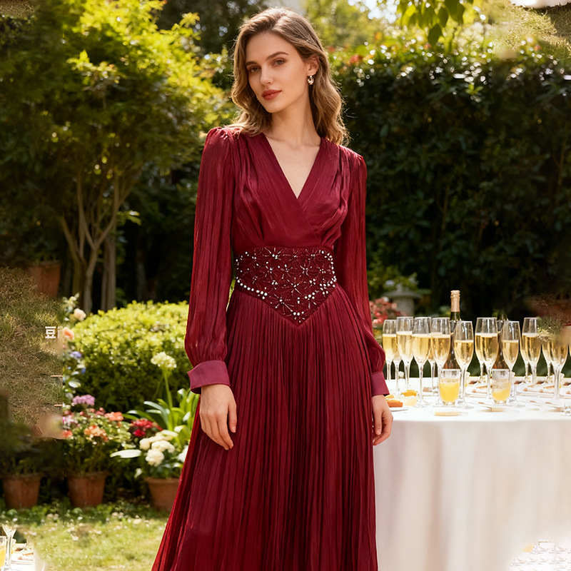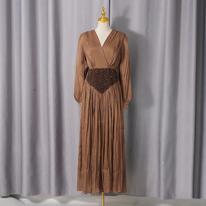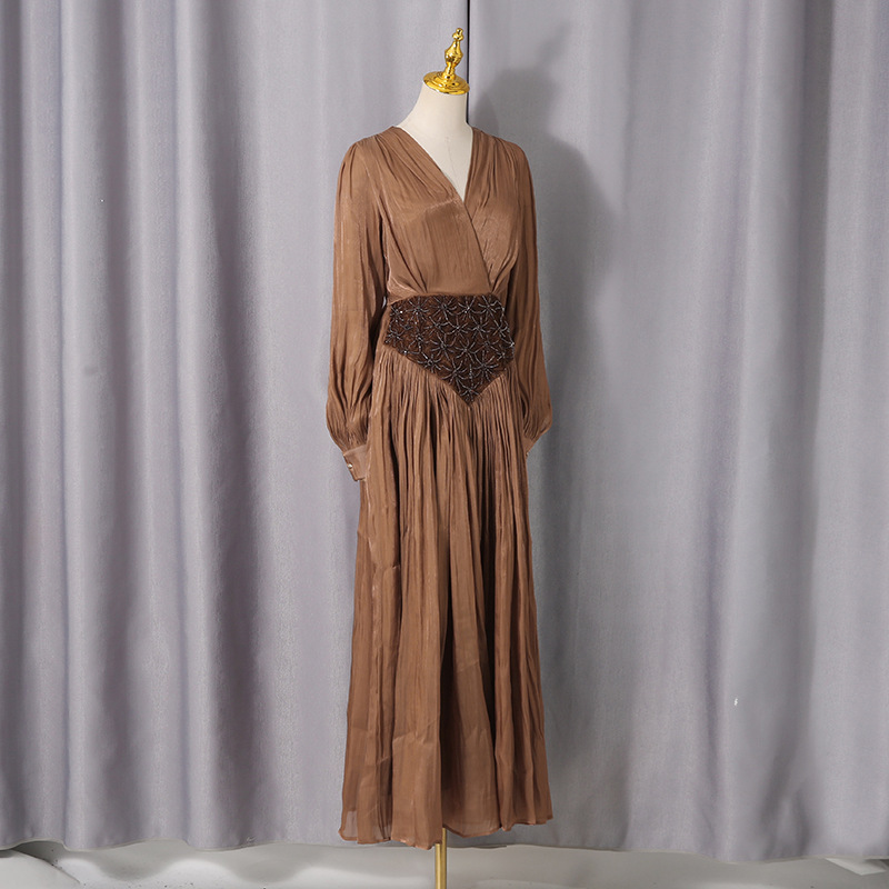 Elegant Long Sleeve Solid Color Diamond Dress Autumn High Grade Waist Slimming Dress Women