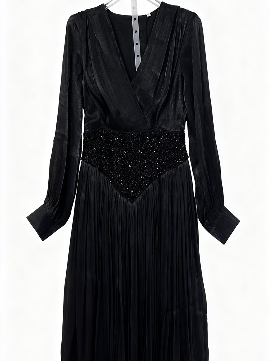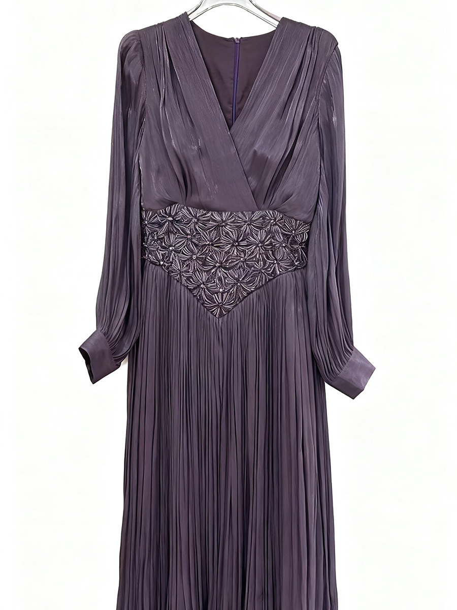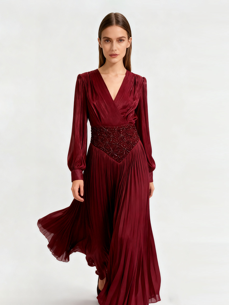Elegant Long Sleeve Solid Color Diamond Dress Autumn High Grade Waist Slimming Dress Women